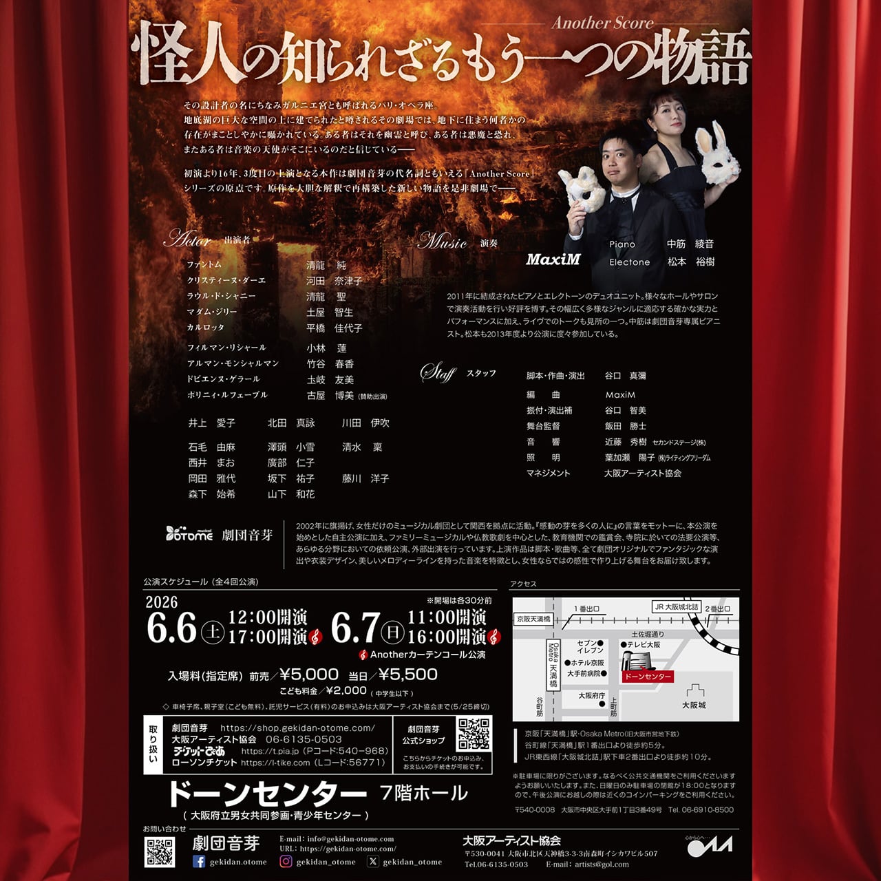 ※車椅子席、親子室(こども無料)、託児サービス(有料)のお申し込みは大阪アーティスト協会(06-6135-0503)までお問い合わせください。